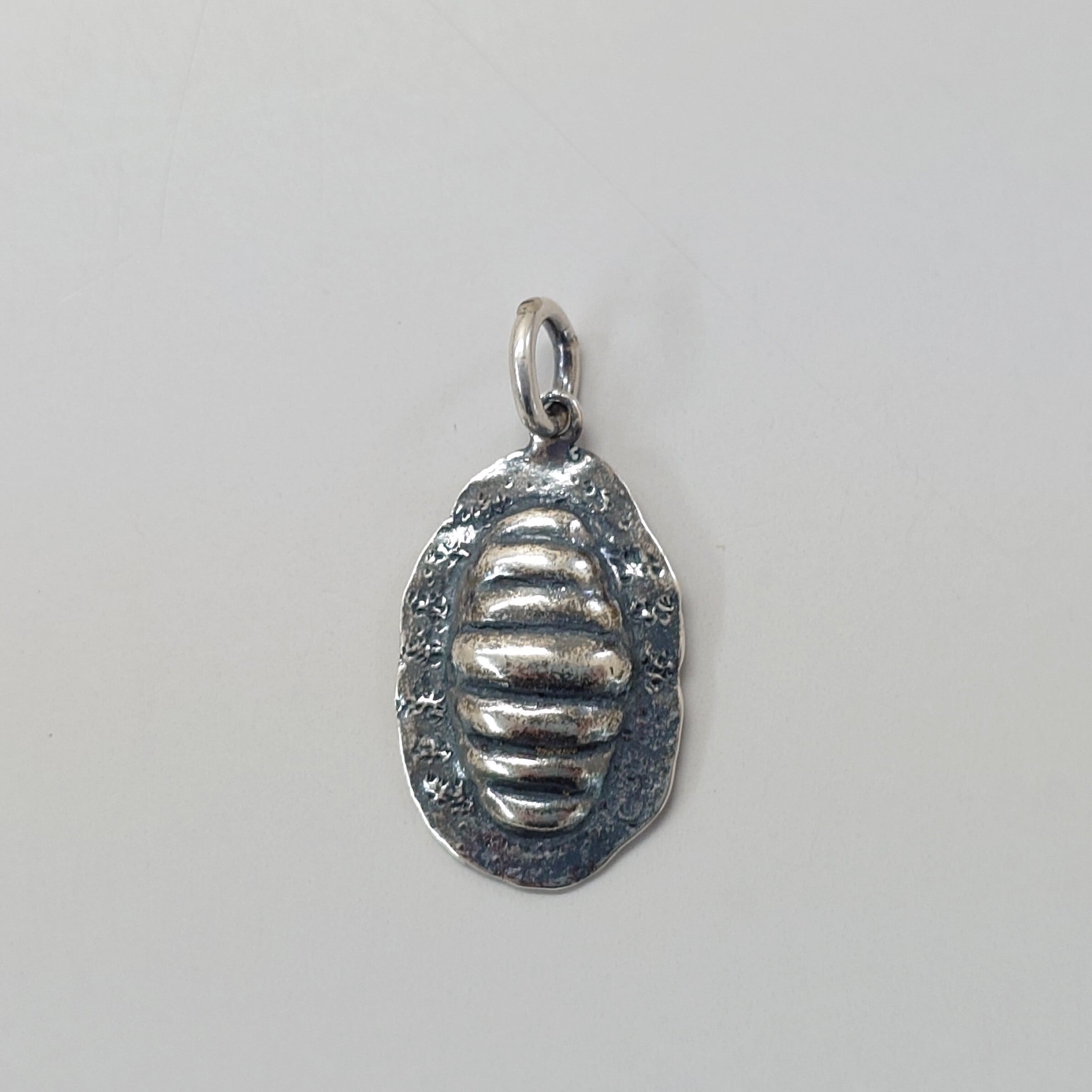 岩場で見かけるユニークな貝「ヒザラガイ」をモチーフにした、シルバーのペンダントトップです。